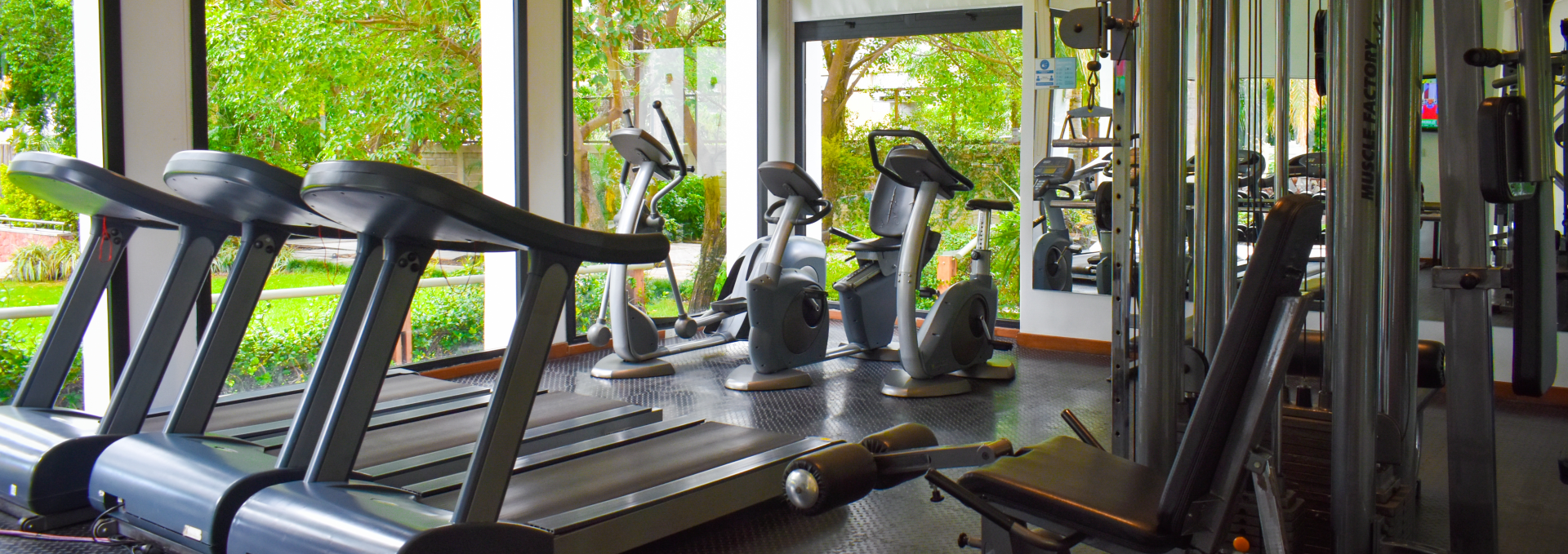 El área de bienestar cuenta con un gimnasio totalmente equipado, ideal para mantener su rutina de